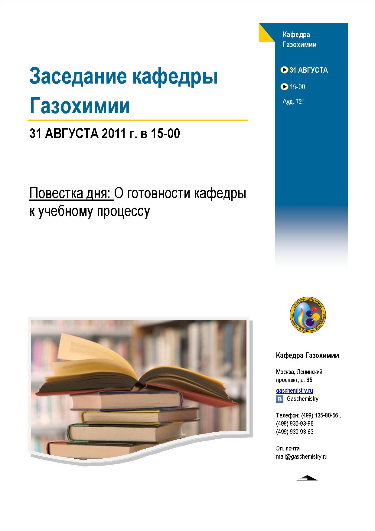31 августа 2011г в 15-00 состоится заседание кафедры.
