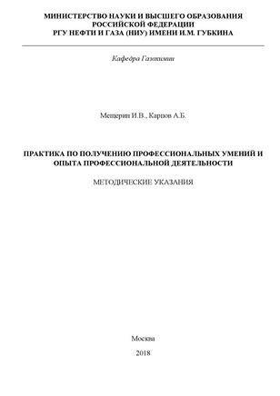 Практика по получению профессиональных умений и опыта профессиональной деятельности [Электронный ресурс]: Методические указания / Мещерин И.В., Карпов А.Б. – М.: РГУ нефти и газа (НИУ) имени И.М. Губкина, 2018 |