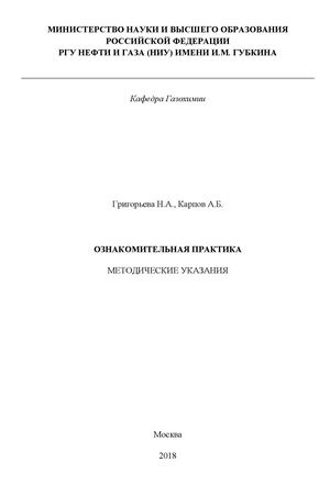 Ознакомительная практика [Электронный ресурс]: Методические указания / Григорьева Н.А., Карпов А.Б. – М.: РГУ нефти и газа (НИУ) имени И.М. Губкина, 2018 |